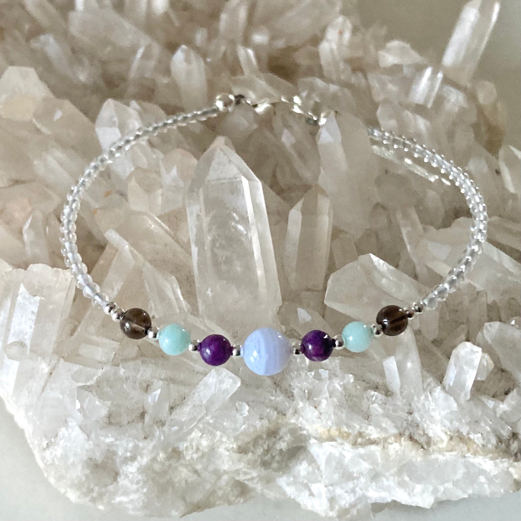 A healing anxiety support bracelet using specially chosen crystals to remind you that you are so much more than your anxieties, feel what comes up, but keep stepping. You are alive, your heart is beating and you have a purpose to share with this world, don’t let anxiety rob you of experiencing and sharing all that you truly are.