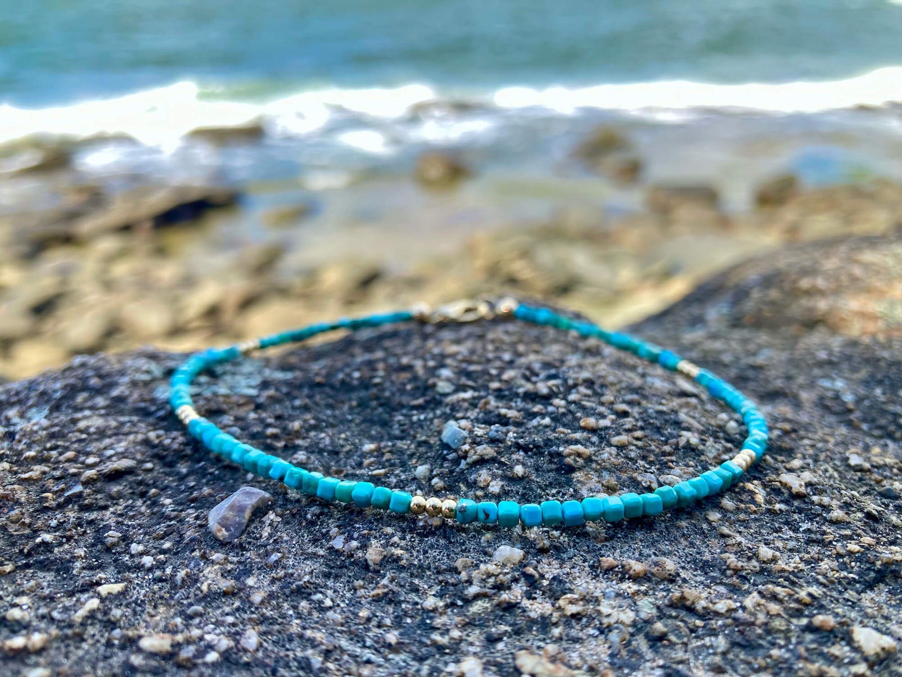 Turquoise and Gold Anklet