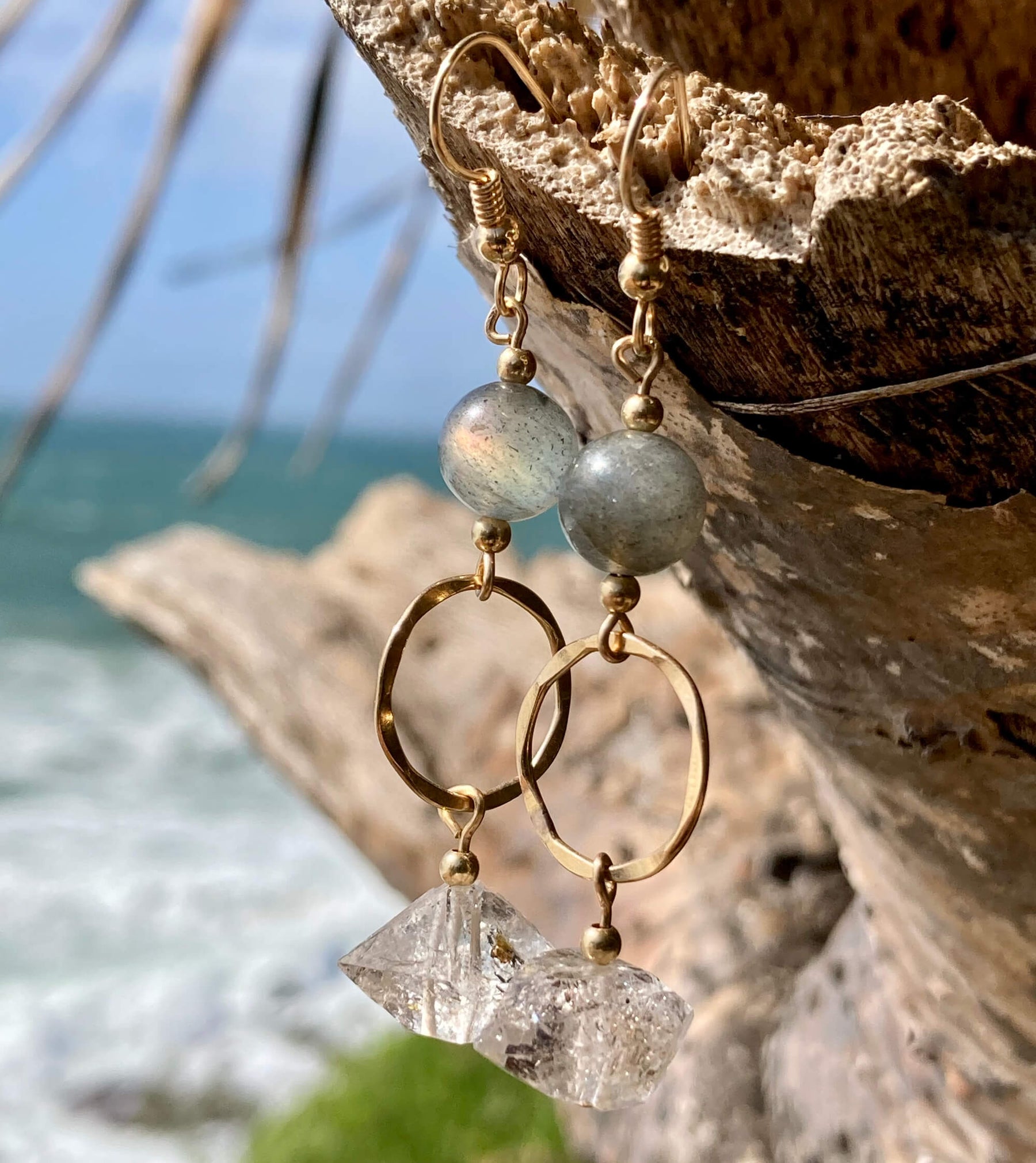 Golden Herkimer Diamond & Labradorite Pendant Earrings