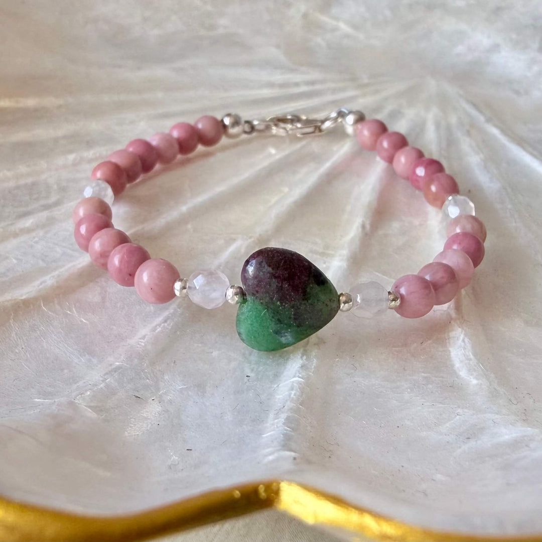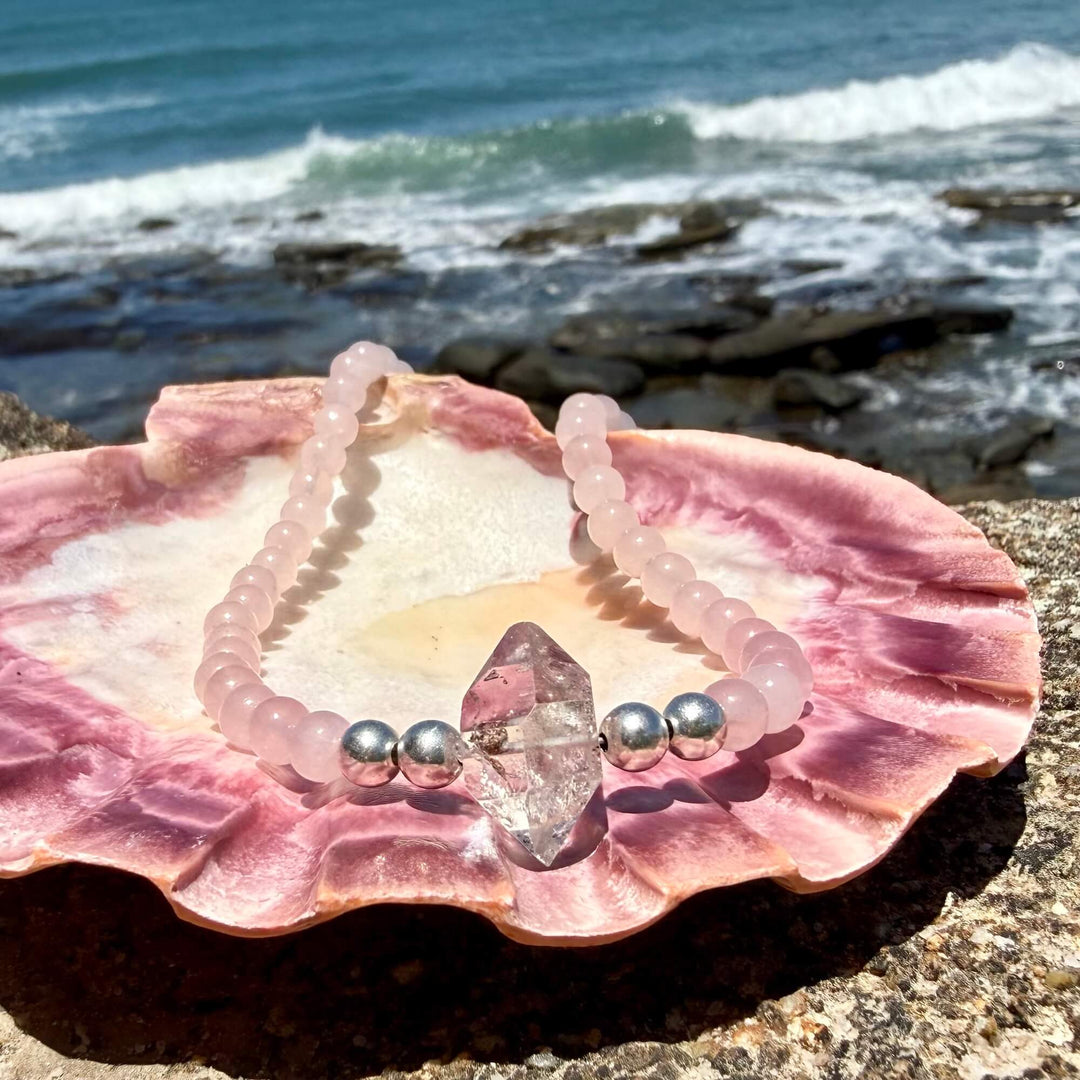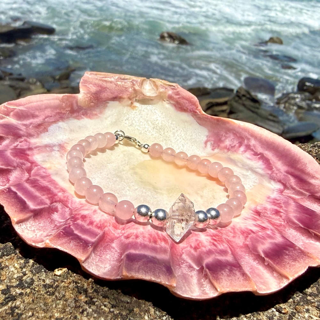 Rose Quartz and Herkimer Diamond Heart Purpose One Of A Kind Bracelet