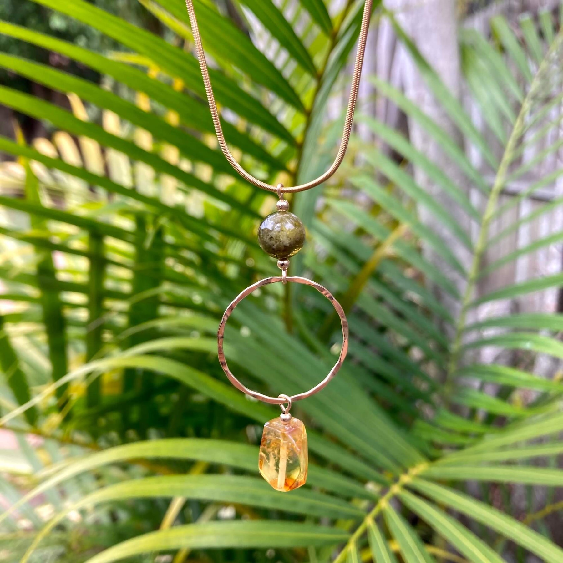Green Garnet & Amber Gold Pendant Necklace