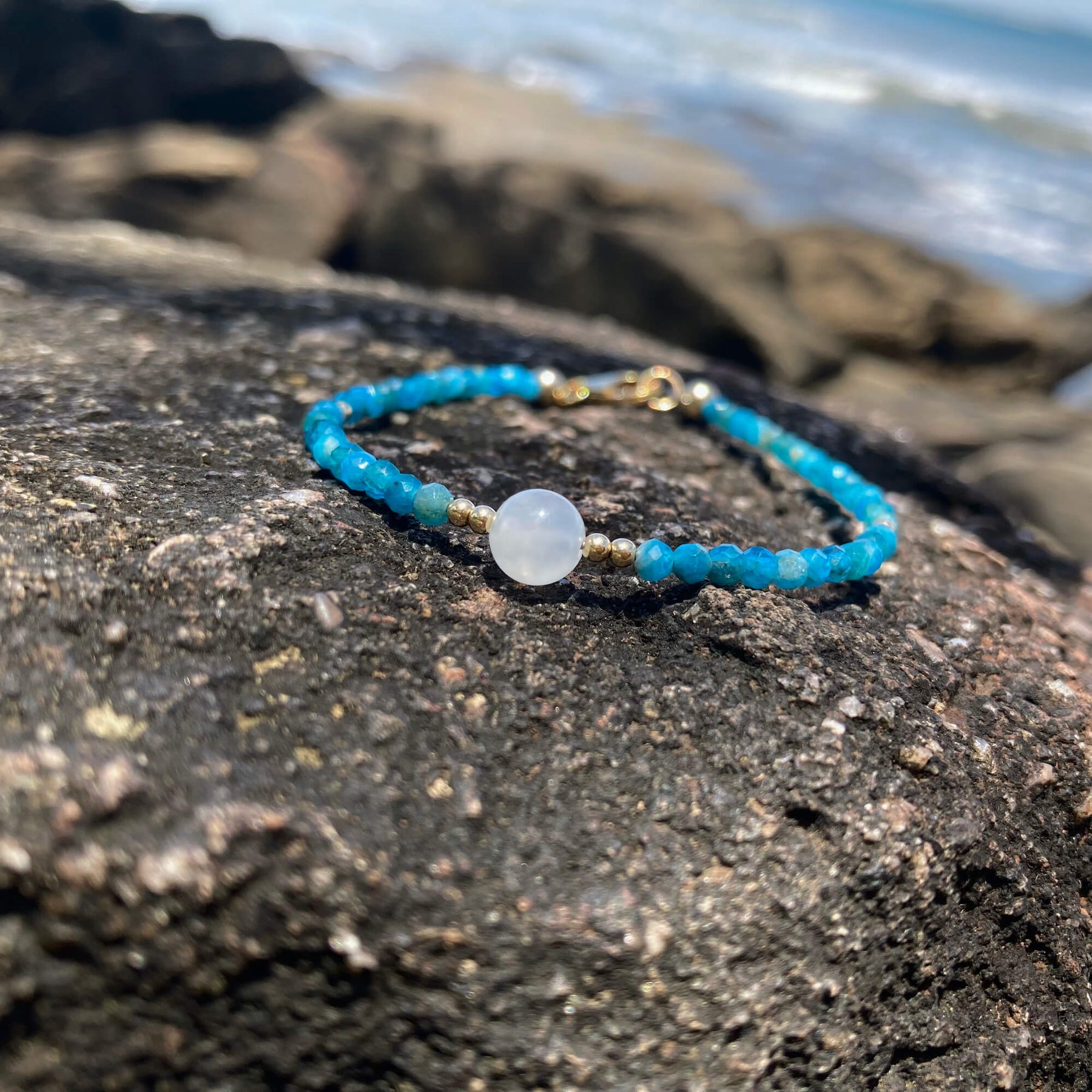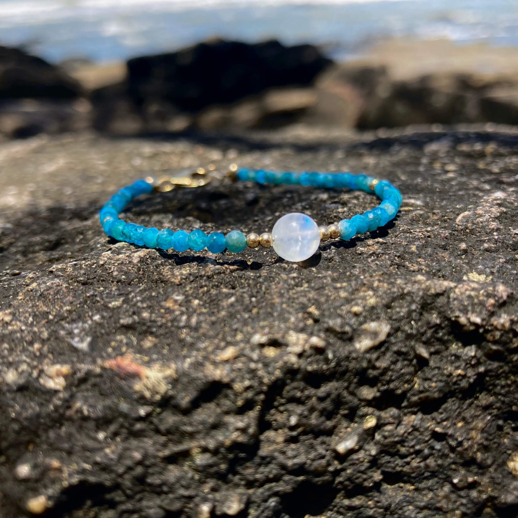 Apatite, Moonstone & Gold Bracelet