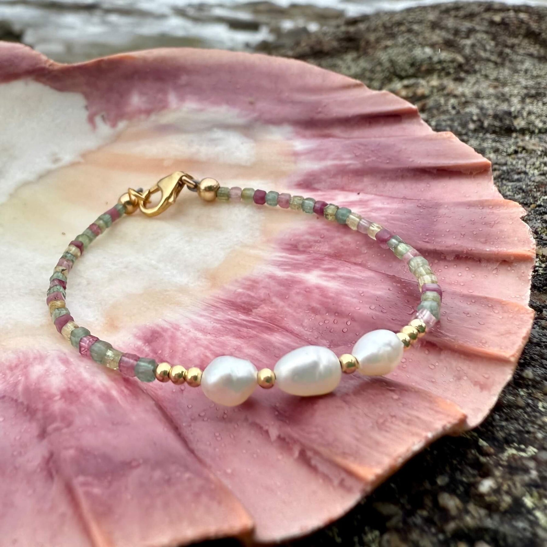 One Of A Kind Tourmaline & Pearl Gold Bracelet