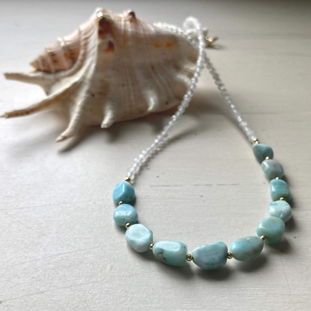 Golden Larimar & Moonstone Necklace