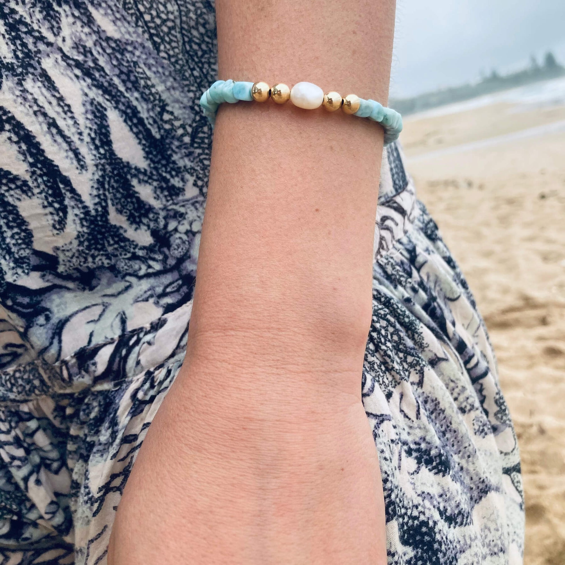 Atlantis Larimar & Pearl Gold Bracelet