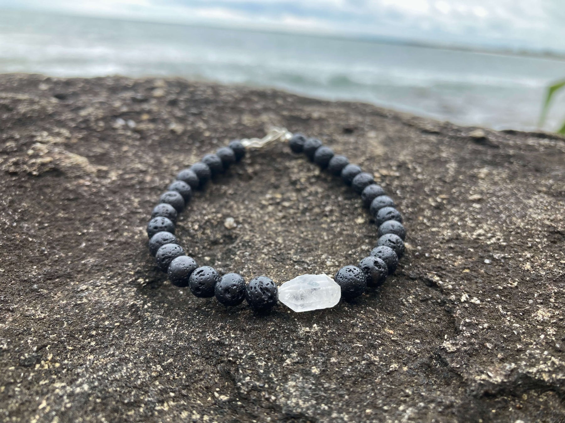We finish this men's bracelet off with Lava Rock beads so that you can add essential oils for that extra boost of empowerment. Lava Rock is a natural essential oil diffuser bead, add a few drops of your favourite oil, the beads soak in the oil and your body heat aids in gently diffusing the scent.