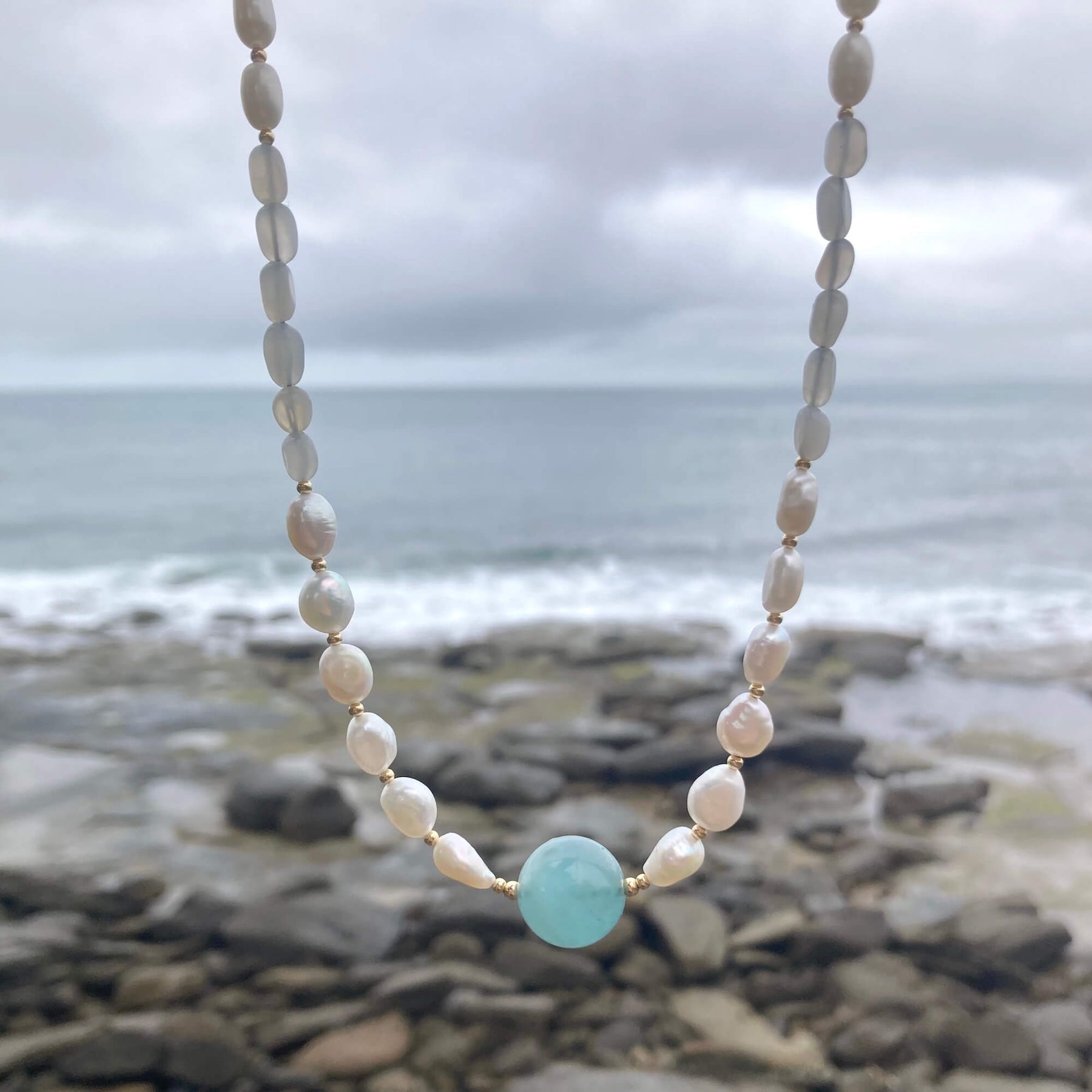 Lemurian Dreaming Aquamarine, Moonstone & Pearl Gold Necklace