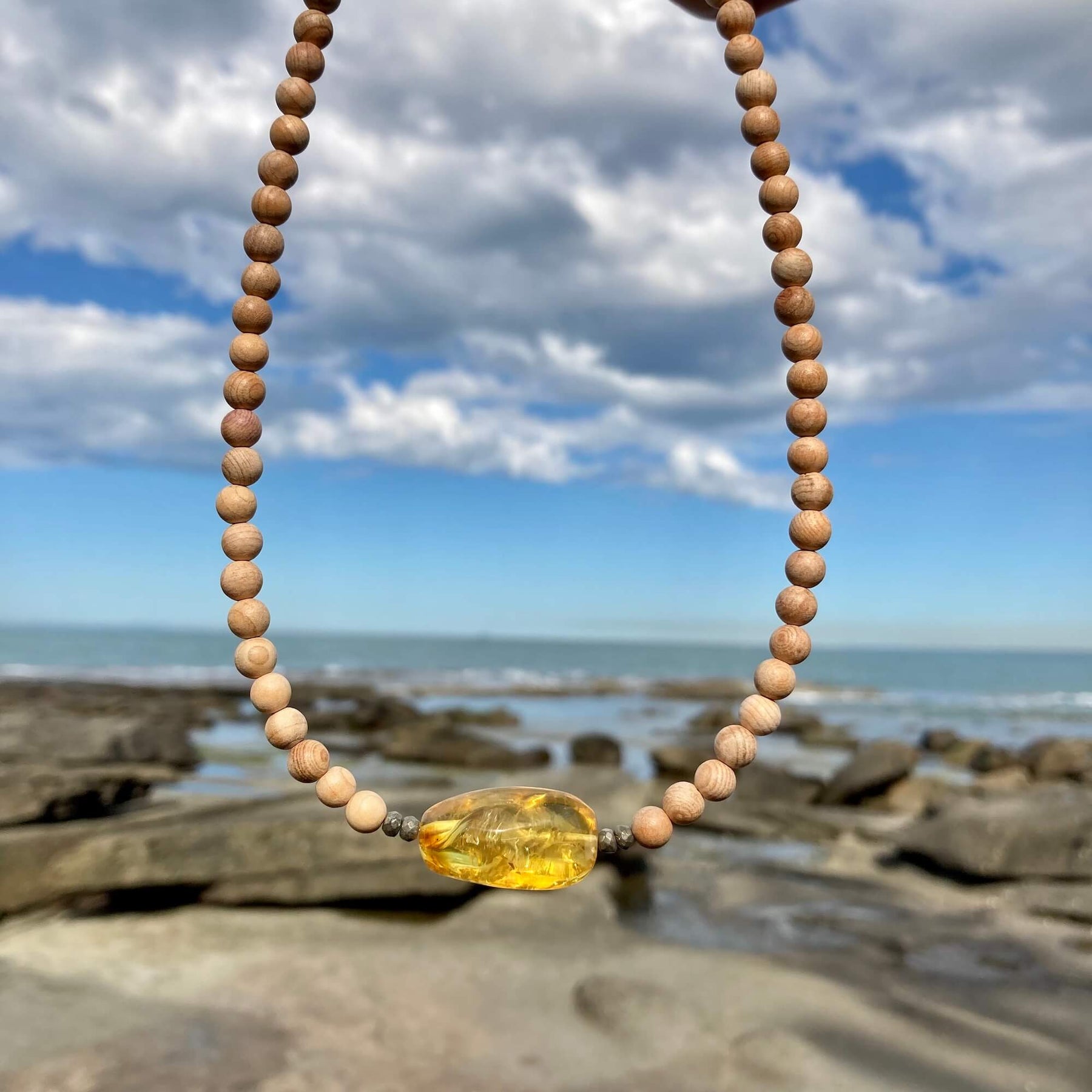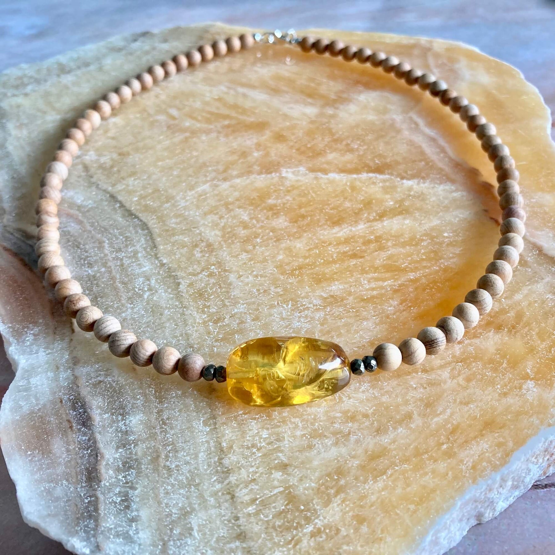 Amber Necklace with Natural Wood