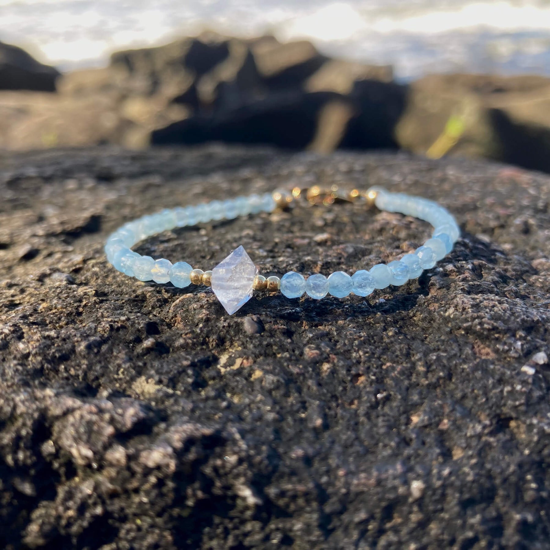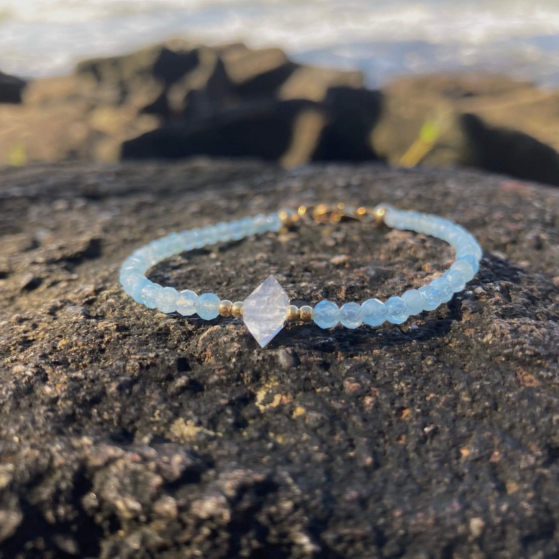 Atlantis Aquamarine & Herkimer Diamond Gold Bracelet