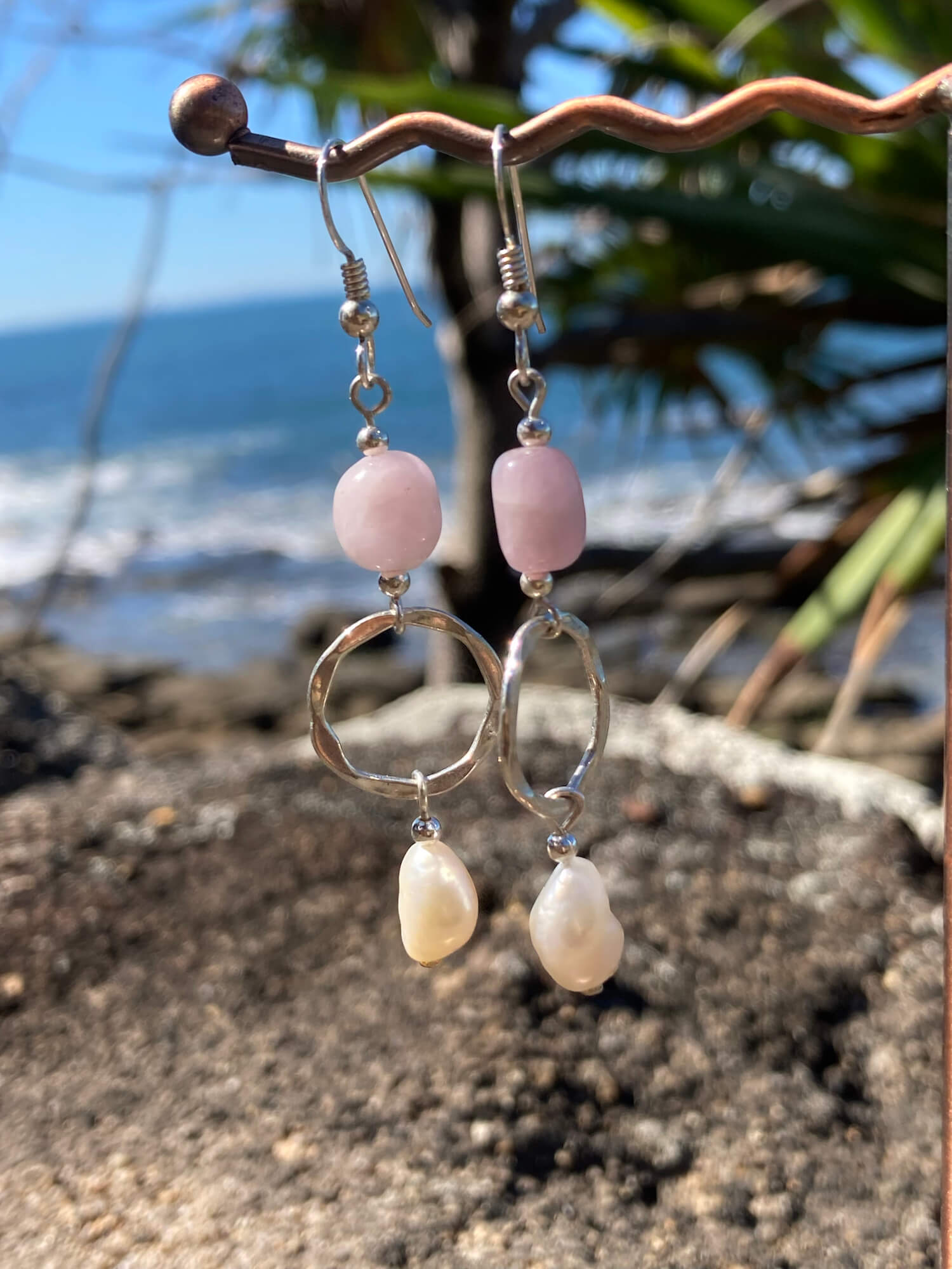 Kunzite & Pearl Pendant Earrings